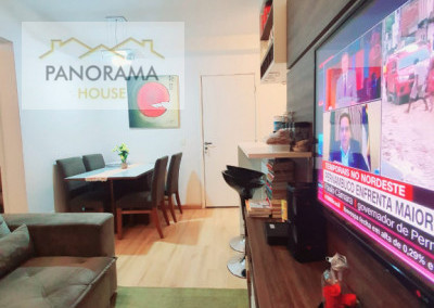 Apartamento de 2 dormitórios sendo 1 suíte com guarda roupa planejado, sala 2 ambientes, 1 cozinha com armário embutido, 1 área de serviço e 1 vaga de garagem. Vista livre, lazer completo e portaria 24 horas.